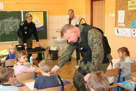 bezpieczeństwo w szkole. Dzieci w trakcie spotkania mogły obejrzeć sprzęt
